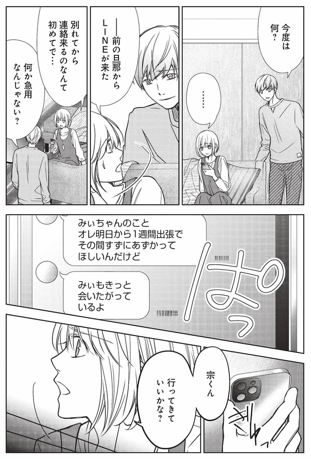 一方、不倫をシタ結果、離婚となった宗一の元妻「実奈子」は、元夫への想いを断ち切れず、娘を口実に、少しずつ距離を縮めていく――。