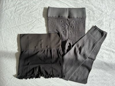 着圧系のレギンスは、実は今まで使ってみた製品では「締め付けられる感覚が苦手」だったのですが、リエリィの製品は、オーガニックコットン混で柔らかな生地が使われているとのことで、着圧はソフト。腰が痛い時は部屋着や仕事着のパンツの下に着用し、ワンピースで外出したい時はそのまま長めのニットワンピをかぶるように着て外出でき、ズボラ民でも使い勝手は上々。