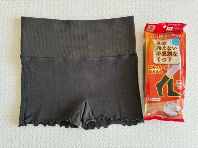 プラスして、桐灰の「足の冷えない不思議なくつ下」も愛用しています。オーバーパンツは肌あたりのよいレーヨンシルク製。腹巻みたいに広めに編まれたウエストゴムの肌面側には遠赤外線効果のある「炭化綿」が採用されており、おへその上まですっぽり、安心感のある暖かさです。お腹の側に磁石がくる、その位置も納得度が高い! 靴下は暖かさを包み込んで逃がさない繊維で作られており、この2つを組み合わせると我が家は暖房を切っても大丈夫です。電気代の節約になるうえ、エアコンの直風で喉をやられがちなので、もうこれがないと困るというコンビ。