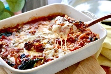 ほうれん草を加えさっと混ぜて耐熱皿に入れ、ピザ用チーズをトッピングしたらトースター(1000~1200W)やオーブン(250)で10分程度、チーズが香ばしく色づくまで焼く。