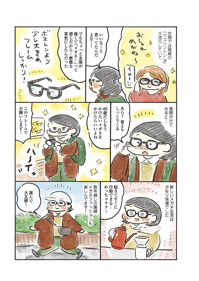 赤いケトルを買ったり、黒縁のメガネやキャップでおしゃれを楽しんでみたり、「すぐ忘れるスイッチ」を入れて嫌なことを忘れたり、目標設定をゆるめにしたり…。