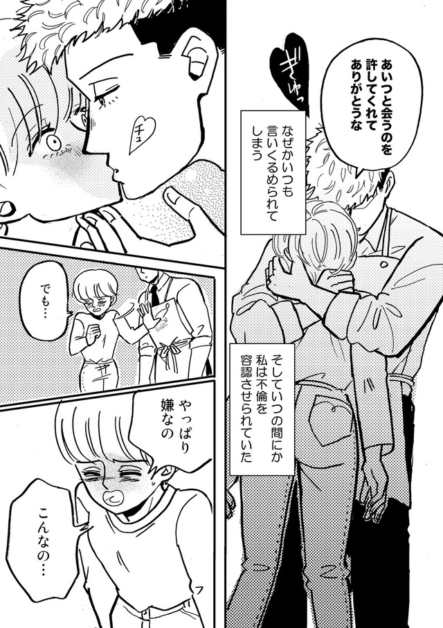 モラハラ夫の口車に乗せられ、不倫を受け入れるよう洗脳されていく。