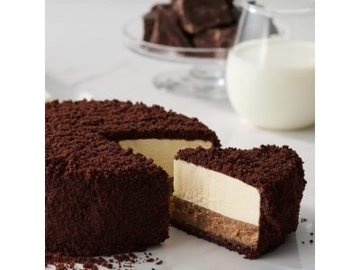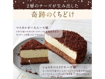 【ルタオ】チョコチーズケーキも捨てがたい! 下層はクリームチーズ&チョコの「べイクド」タイプ。上層はマスカルポーネチーズ&北海道生乳の生クリームの「レア」タイプ♪