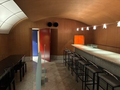 伝説のデザイナー、倉俣史朗が1988年に東京・新橋に設計した寿司屋「きよ友」を店舗ごと買い取り、香港へ移設・復元させたプロジェクトも横山さんの手によるものです。「きよ友」の、ひとめ見て何のお店であるのかがわからない、青い曲線の壁が印象的なエントランス。