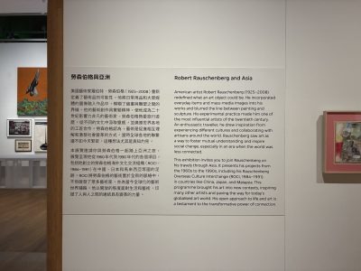 こちらは「シグ・コレクション」と同じフロアで26年4月26日まで開催中の、ロバート・ラウシェンバーグの企画展です。ジャスパー・ジョーンズと同時期に活躍したネオダダの代表的なアメリカ人作家ですが、実は彼が85年に北京で行ったプログラムが「’85新潮」という中国現代美術の大きな波を引き起こしました。当時、何を描けばよいのかがわからなかった中国の芸術家たちに「ゴミや日用品を組み合わせた物体(コンバイン)」を紹介し、「西洋絵画の真似をしなくていい。自分たちの周りにある現実を素材にすべき」という方向を示した結果、先ほどの「シグ・コレクション」に見られる熱量の高い作品が生まれていった、という経緯。