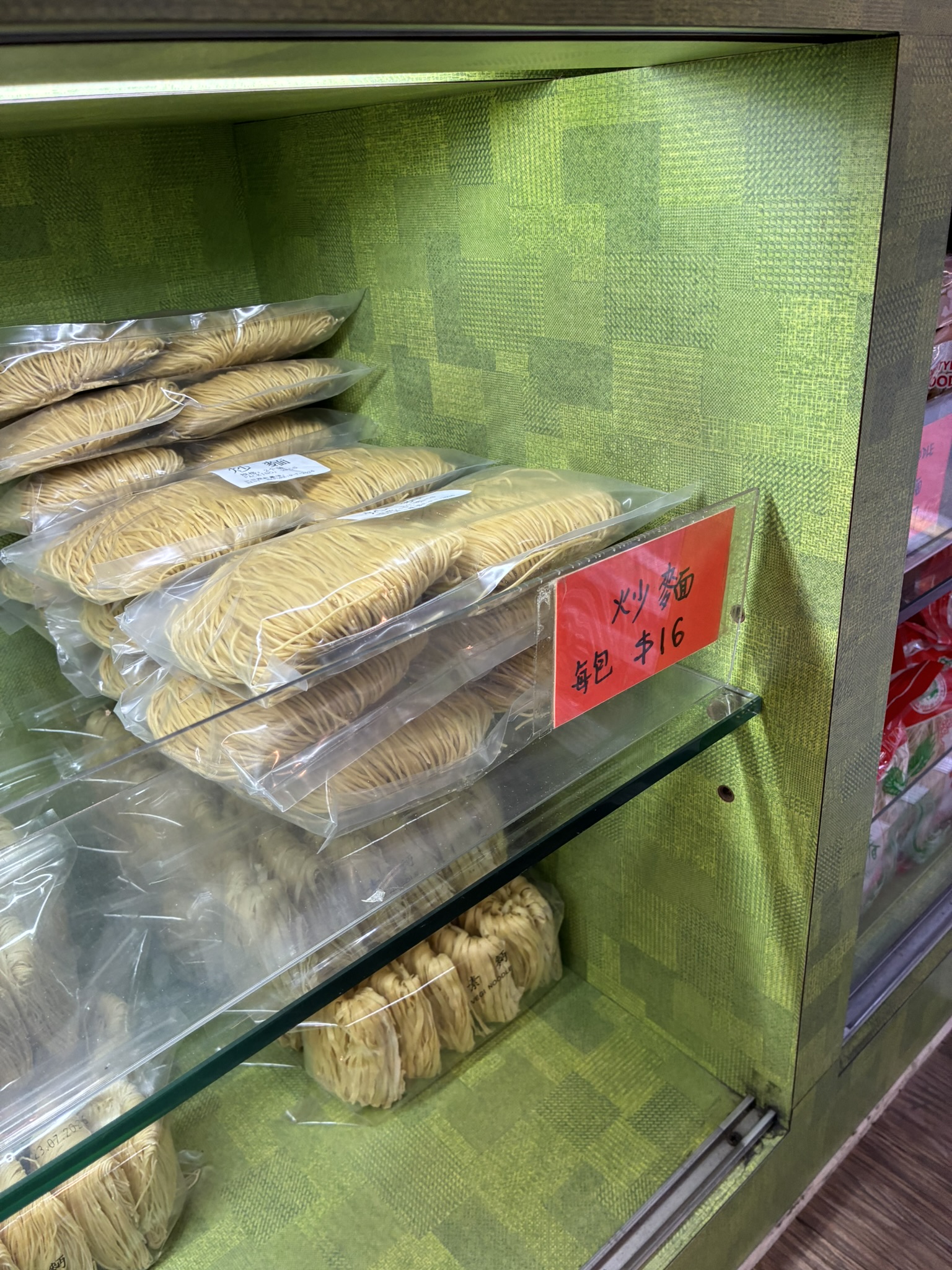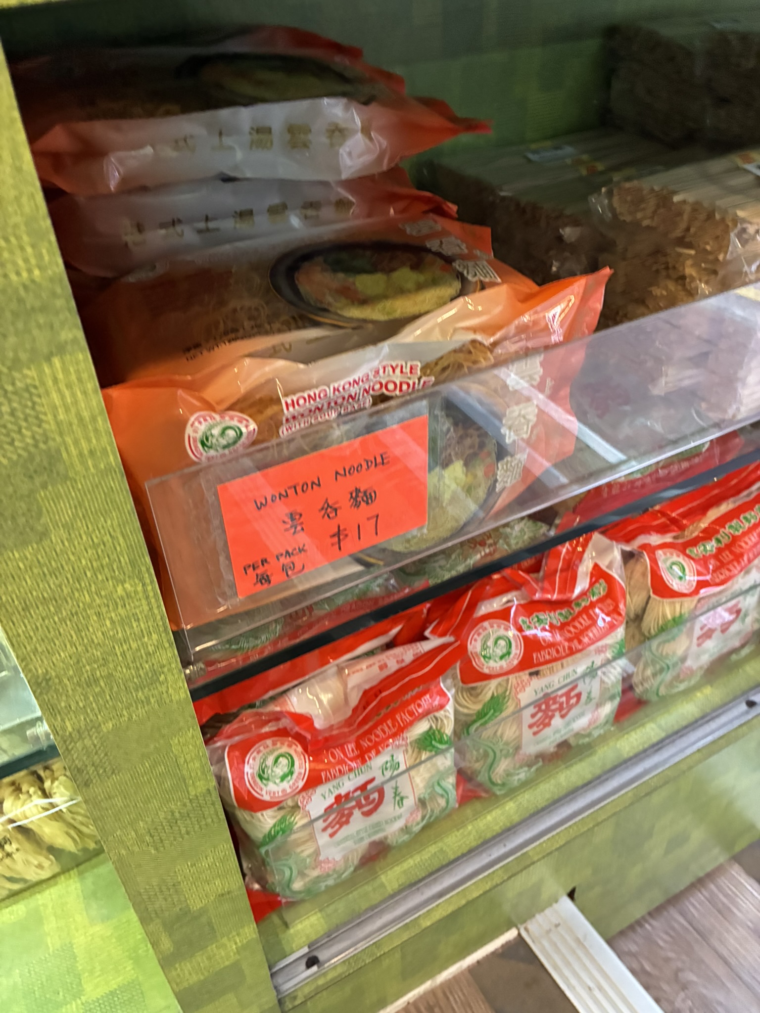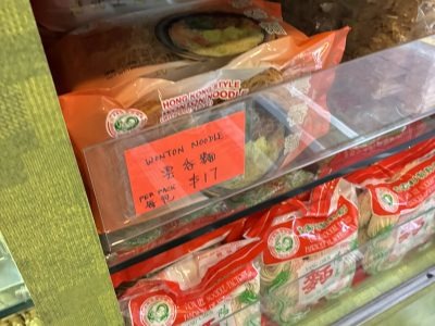 こじんまりとした店内に、あらゆる麺がぎっしりと並んでいます。主なフレーバーは15種類、さらに細麺や太麺などのバリエがあります。こちらも日本人観光客にフレンドリーで、商品によっては日本語の説明も。見ていると「どんな麺がほしいの?」と声をかけてくれます。私はホテルで食べた雲吞麺と、香港焼きそばを作るための蝦子麺が欲しいのですが……。