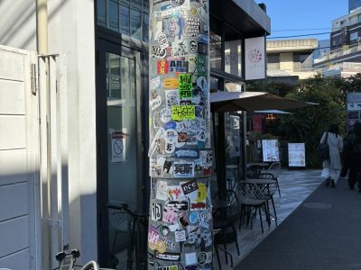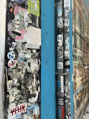 よく見るとメインのウォールアートを避けて、そばの柱や看板にステッカーを貼っていることがわかると思います。これは著名作家に対する敬意のお作法。また、なるべく他者のステッカーの上には貼らないのもセンスなのだそうです。