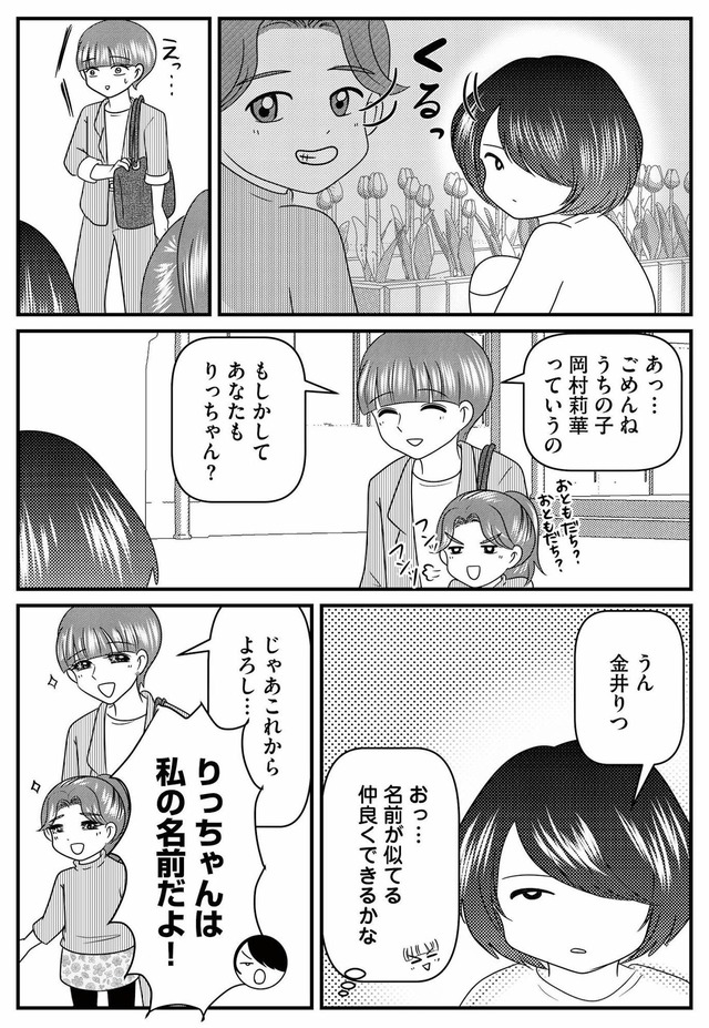 ある日、入学説明会でひとりで参加していた父子家庭の同級生・りつが気になり、親切心からその子に手を差し伸べる。