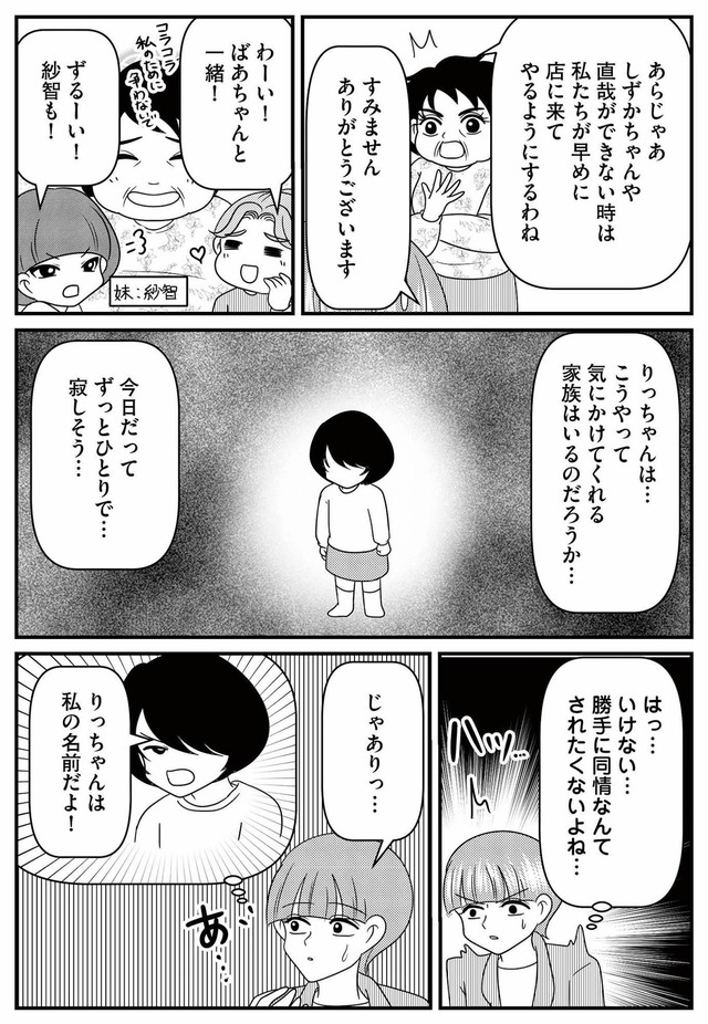 ある日、入学説明会でひとりで参加していた父子家庭の同級生・りつが気になり、親切心からその子に手を差し伸べる。