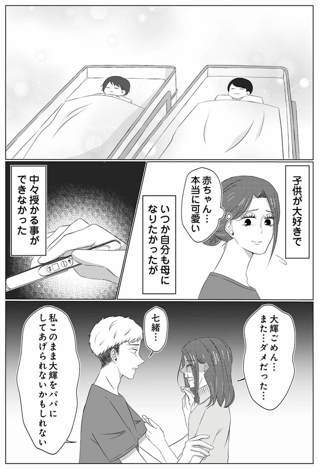 長い妊活の末、待望の子を授かった七緒。だが育児の疲れから、夫・大輝を拒むようになってしまう。