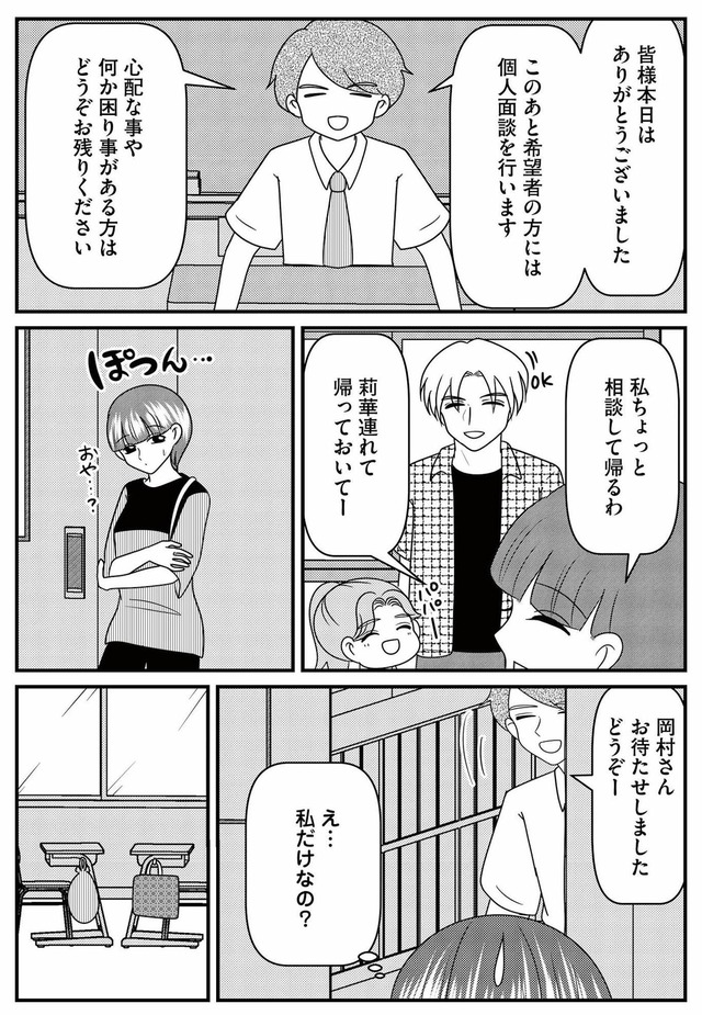 ある日、入学説明会でひとりで参加していた父子家庭の同級生・りつが気になり、親切心からその子に手を差し伸べる。