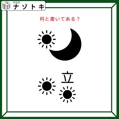イラストをすべて漢字に直してみましょう。三日月は「月」、太陽は「日」を表します。イラストの位置にその漢字を配置してみると、それが漢字に見えてきませんか。