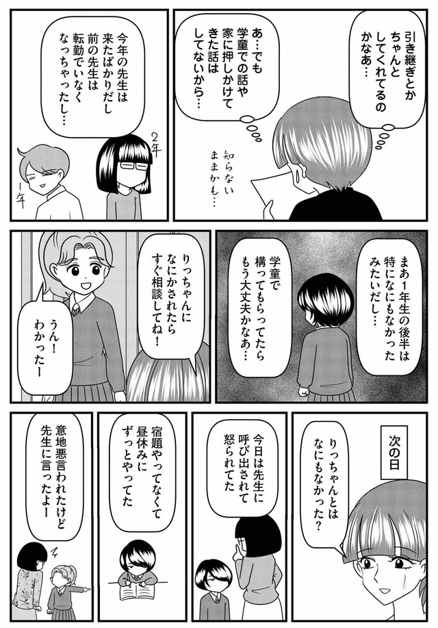 ある日、入学説明会でひとりで参加していた父子家庭の同級生・りつが気になり、親切心からその子に手を差し伸べる。