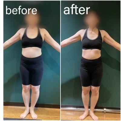 横幅が狭くなり、お腹もすっきりしてきた。ウエストもマイナス4cmに。