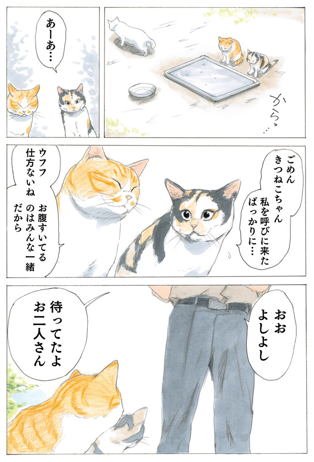 ミケちゃん「きつねこちゃん元気でね。お互いずっとのお家で幸せに暮らそうね」