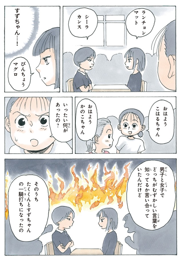 「どちらが難しい言葉を知っているか」男女で競い合う!親友が大ピンチ…果たして勝利の行方は?【かのこちゃんとマドレーヌ夫人 #4】