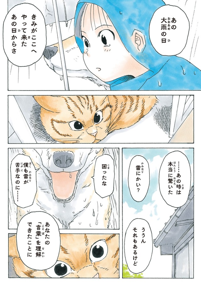 半年前ゲリラ豪雨の日に、ふらりとやってきたアカトラの猫に「マドレーヌ」と名付けたかのこちゃん。そしてマドレーヌ夫人は、老犬の柴犬・玄三郎の妻になる!?