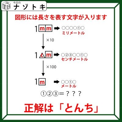 数字のあとに続くもの、といえば単位であることが多いですよね。また、×10をすることによって単位が変わっていることがわかります。そして、右の◯の数はその単位の読みの文字数です。そのことを踏まえて考えていきましょう。何の単位でしょうか?