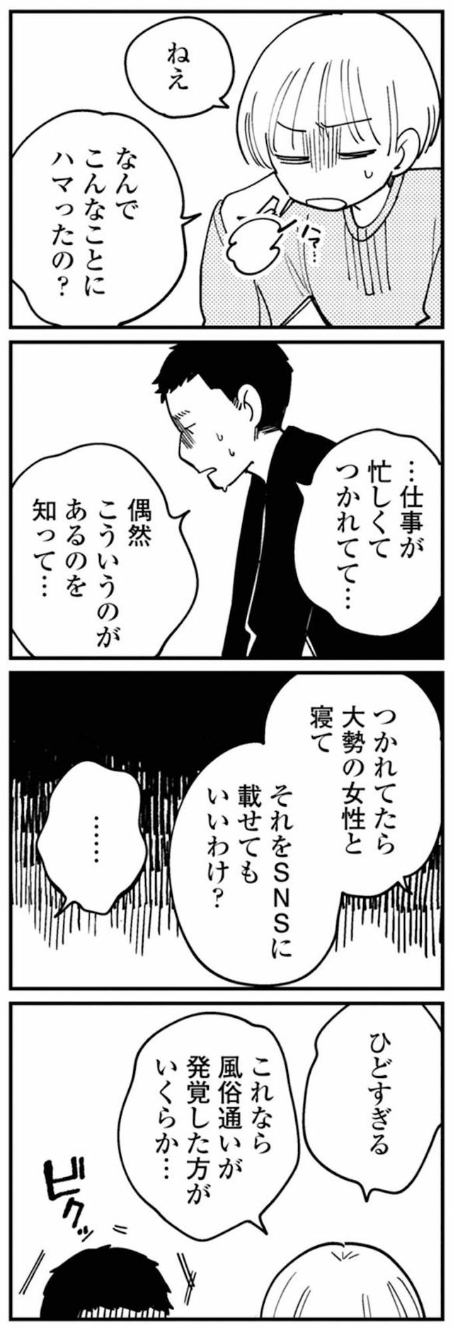 「仕事が忙しくて疲れてて…」と言い訳する夫。しかも、さらなる嘘が判明!?【夫が裏アカで70人と不倫してました #20】