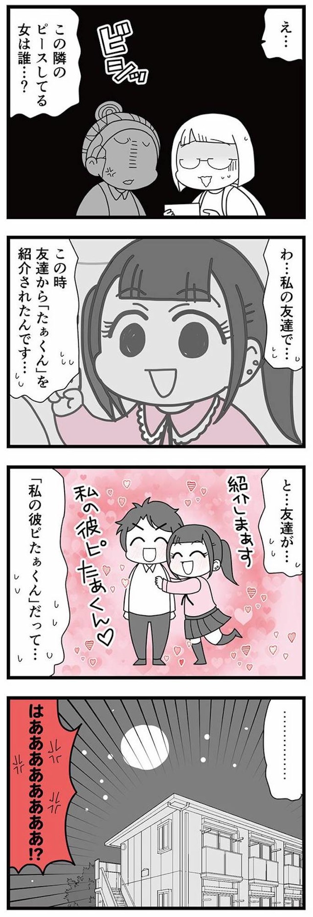 真相を確かめるため、正子は妻とともに親友とその彼を問いただすことにしたのだが――。