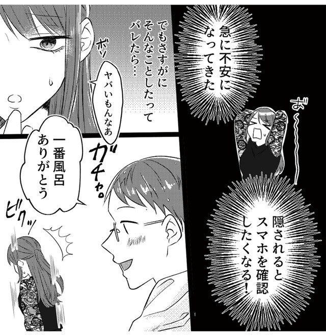 トイレやお風呂までスマホを持ち歩く夫。「今までこんなことなかったのに…」深まる妻の疑念【不倫断罪飲み会はじめます #5】
