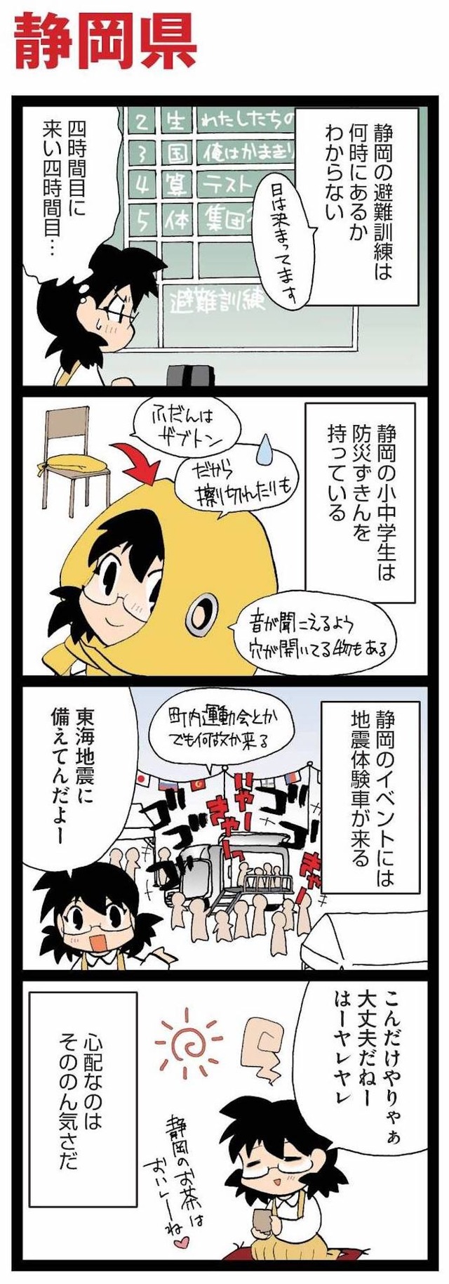 静岡の小中学生は防災ずきんが当たり前。災害への備えは万全だけど「県民性」が心配?【県民性マンガうちのトコでは #7】