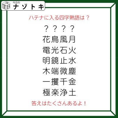 クイズです!「ハテナに入る四字熟語は?」ほかの四字熟語はあるルールに基づいて並んでいます【難易度LV2.・甘口】 | NewsCafe