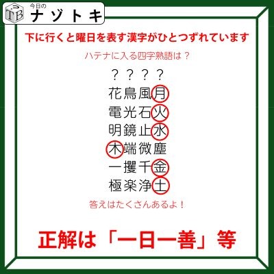 それぞれの四字熟語には曜日が入っているようです。