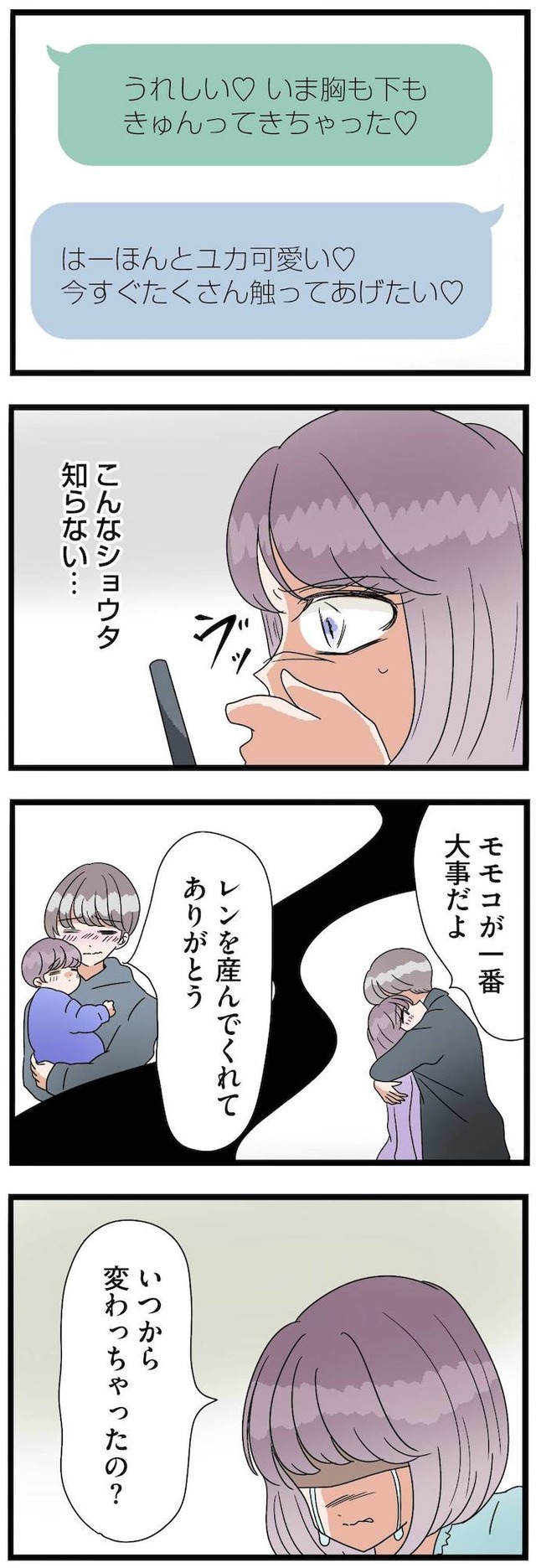 第二子を妊娠中の専業主婦・モモコは、夫ショウタと長男レンと穏やかな日々を過ごしていた。