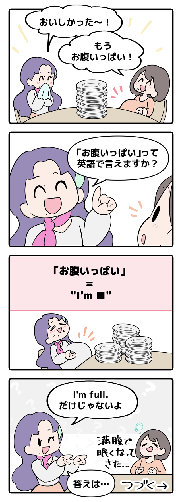 ◆【前回】関連記事を読む▶マンガでわかる!英語で「お腹いっぱい」はなんて言う?