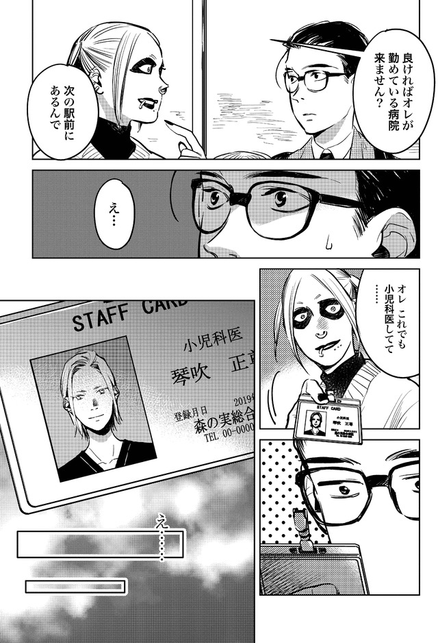 息子が嘔吐! 羽根田は困っていたところを悪魔のようなメイクを施した若手小児科医・琴吹に救われる。
