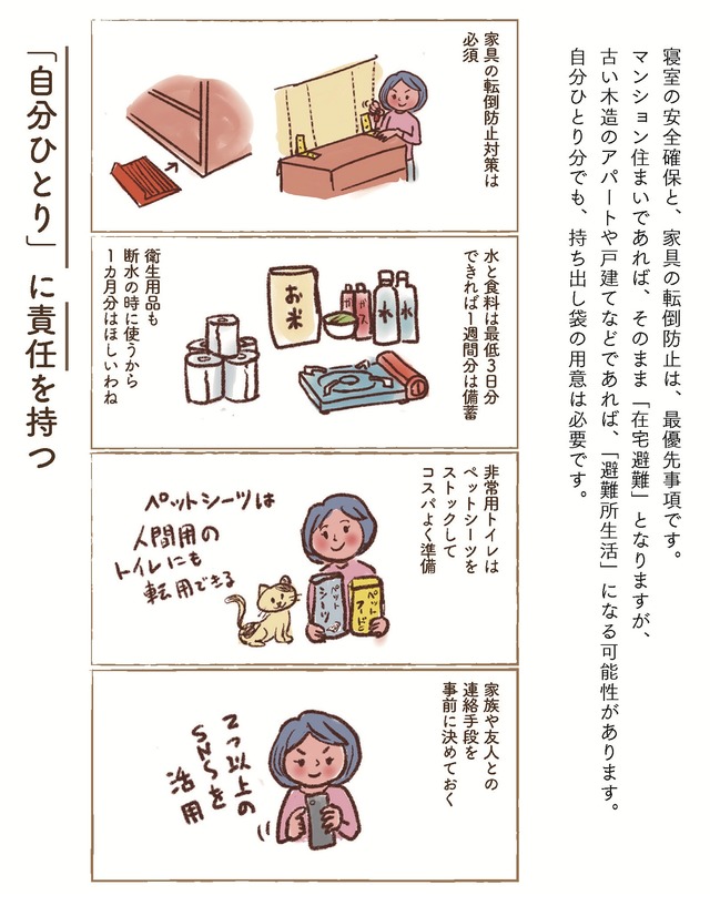 家族で暮らす人、ひとり暮らしの人、ペットがいる人など、「知っているだけ」で安心につながるヒントが満載です。今すぐ役立ち、これからも心強い一冊です。