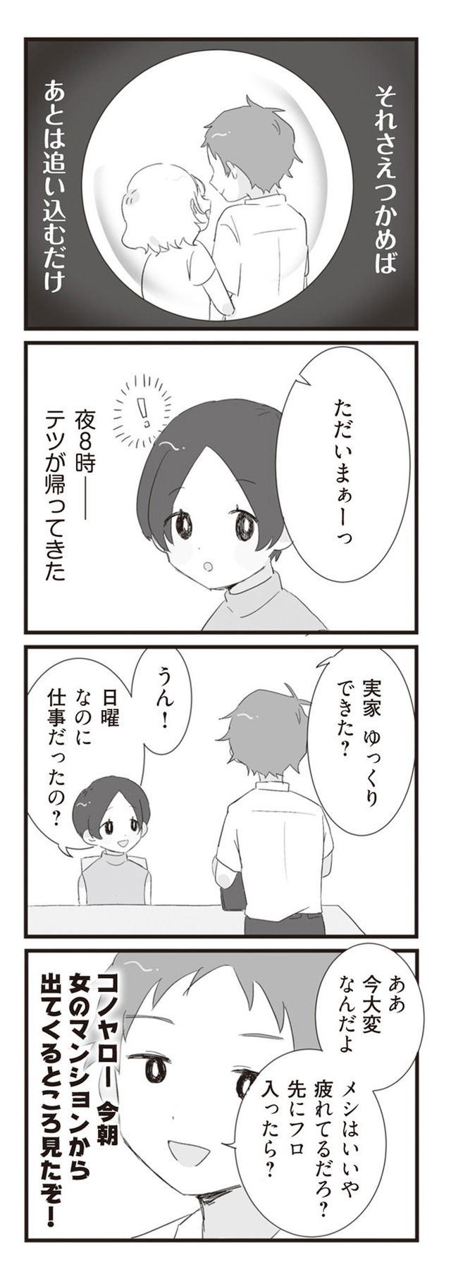 身分を明かさず旦那の浮気相手とLINE友達になり、恋愛相談に乗ると旦那が偽装離婚の計画を企てていることを知る。