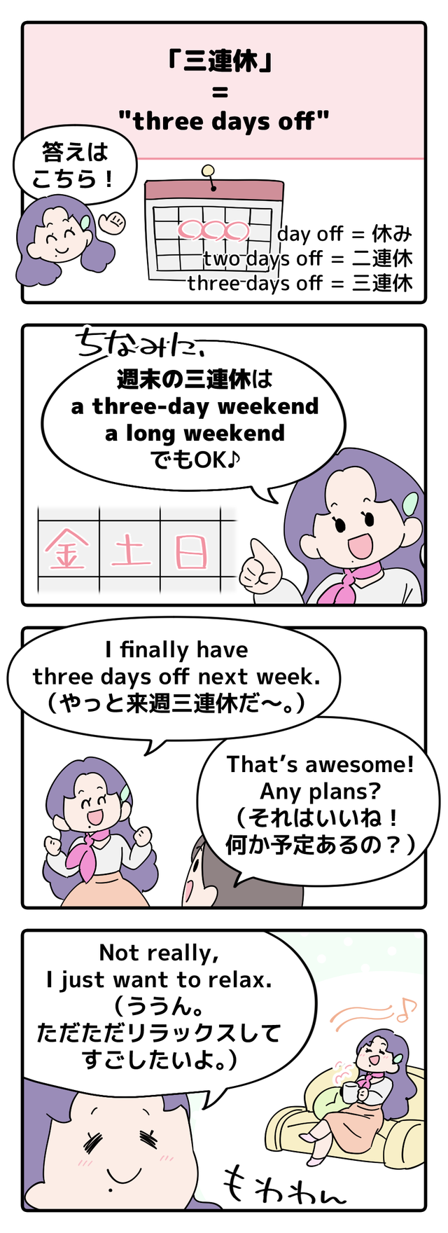 英語で「 三連休 」って言えない人は読んでみて!ヒント「holiday」は使いません