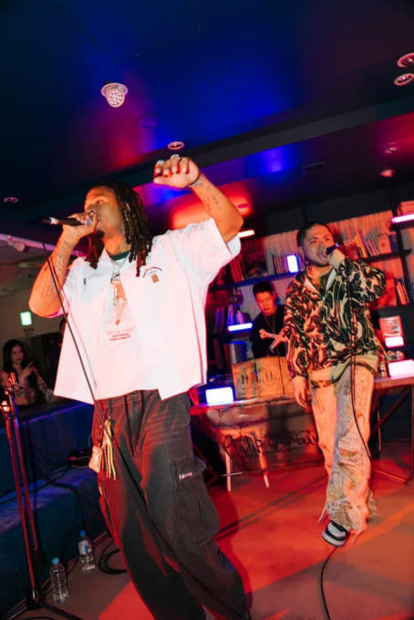 さらにパーティーのラストではニューヨーク・ブルックリンをレペゼンするアーティスト、AK THE SAVIOR(エイケイ・ザ・セイヴィアー)が登場。日本を代表するラッパー・Leon Fanourakis(レオン・ファノラキス)と、この日限りのスペシャルコラボライブを行い、会場は最高潮の熱気に包まれた。