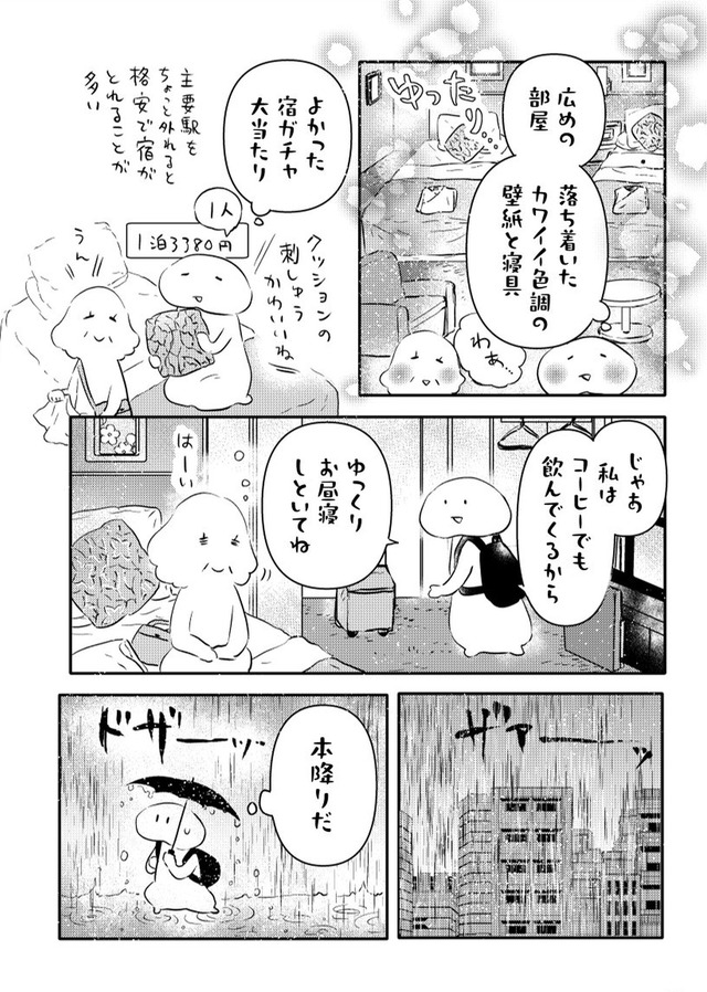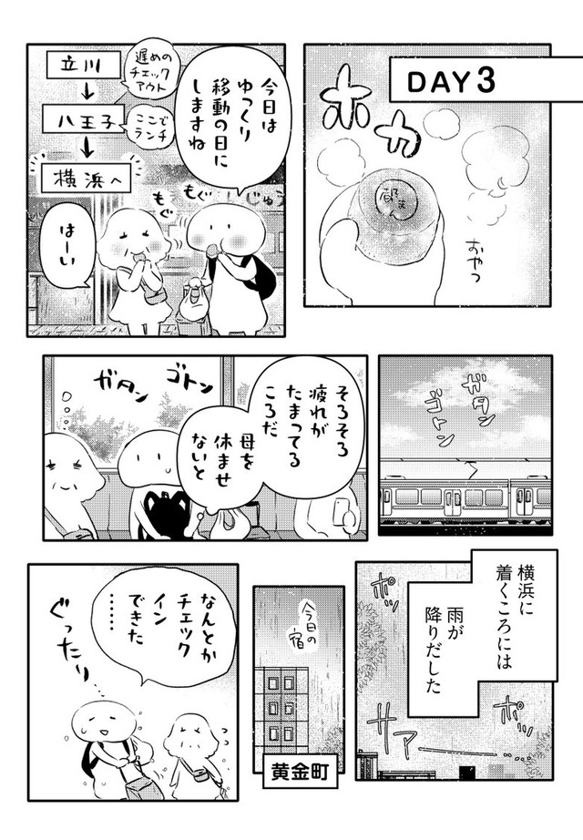年間に何度も旅する漫画家の“私”が、旅慣れない母を連れて向かったのは関東への二人旅。壊れたサンダルで現れる母に始まり、行く先々でハプニング続出。