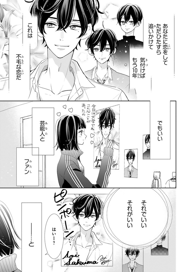 「結婚を前提に、俺と付き合ってください」ぐいぐい来る推し・さっきゅんと、ファンの守るべき一線を越えないように必死のすみれ。
