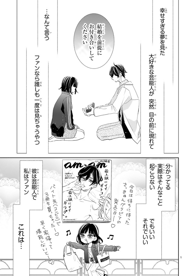 「結婚を前提に、俺と付き合ってください」ぐいぐい来る推し・さっきゅんと、ファンの守るべき一線を越えないように必死のすみれ。