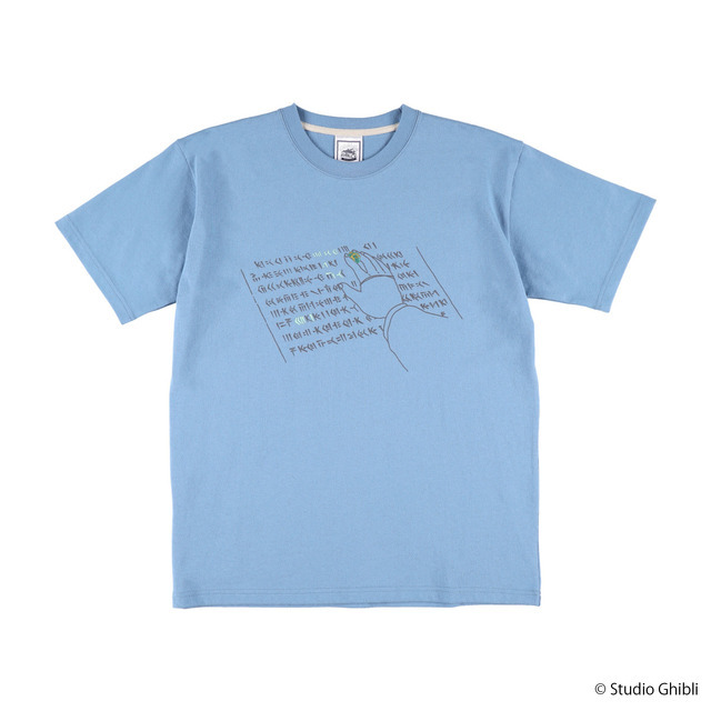 ムスカが飛行石を使用し、石板でラピュタ城を操るシーンをデザインし、暗闇でぼんやりと光るようすを楽しめるギミック付きの一枚をはじめ、黒猫のジジにそっくりなぬいぐるみをデザインしたTシャツ、タヌキたちが掲げる標語「化学復興 人間研究」がポイントのTシャツ。