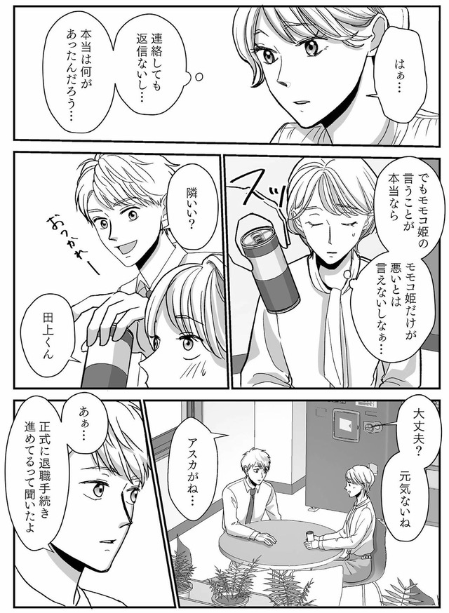 しかしある日、営業の藤田シオリが爽やかな新星・田上と急接近。その光景を目にしたモモコに沸き立つのは異様なプライド。