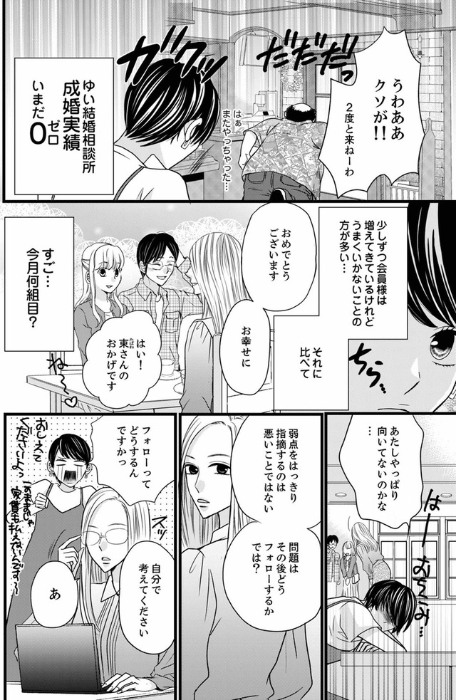 意気消沈する結衣だが、成婚率100%の伝説の婚活コンシェルジュ・束愛子との出会いがきっかけで人生の転機が訪れる――。