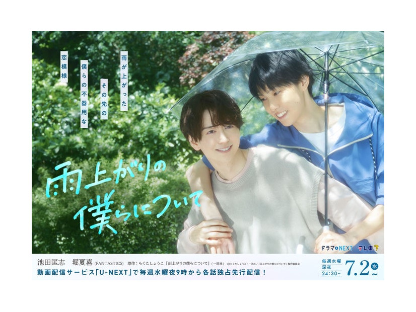 【モデルプレス=2025/06/17】俳優の池田匡志とFANTASTICSの堀夏喜がW主演を務める7月2日スタートのテレビ東京系ドラマNEXT「雨上がりの僕らについて」(毎週水曜深夜24時30分〜)より、メインビジュアルが公開。併せて、エンディングテーマ・場面写真が解禁された。【写真…